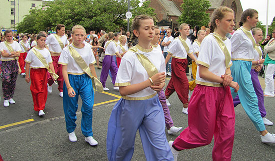 There seemed to have been a lot of work put into the dancers costumes this year and they added a lot of colour to the procession aided by some great sunny weather. The simple bright yellow caps and sashes were very effective for Starkey's younger dancers.
