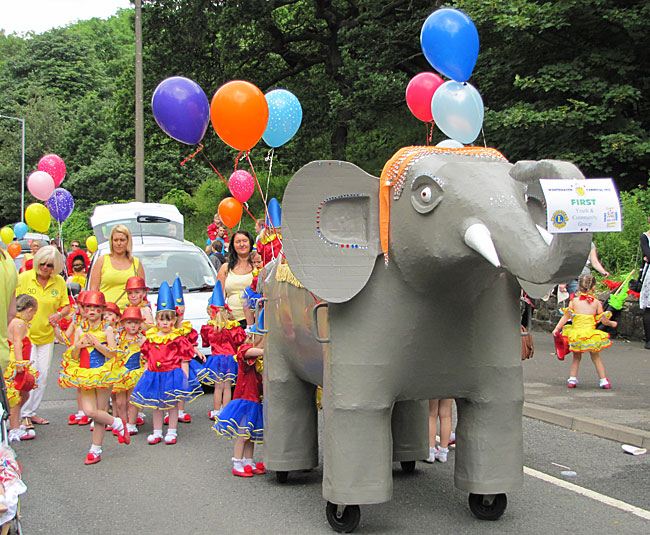 The most fantastic entrant in this year's carnival was this virtually life-size model of an elephant which led a circus troupe. It had been cleverly mounted on wheels so that it was easier to manage than a real elephant and didn't need someone with a shovel following behind.