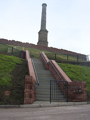 It was at the end of the 1970's that the South Beach area last got some serious work done to it. At that time the area that had at one time been the site of Wellington pit was landscaped, a car park was added and a long winding path created up to the Candlestick monument. This decorative chimney, with a design said to be based on one of the Lowther's candlesticks, was originally a chimney for boilers at for the coal mine.