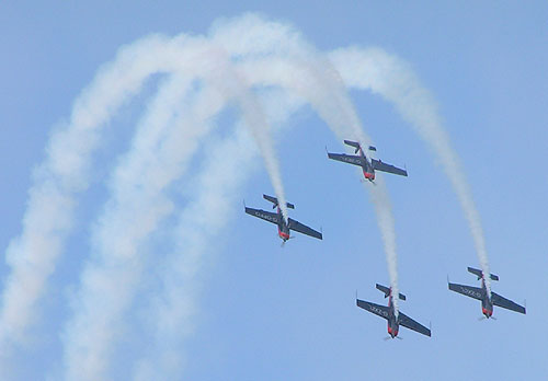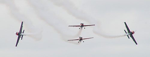 Some of the close crosses momentarily appeared like a mid-air collision until the smoke cleared and all four planes emerged and continued on their way safe and sound.