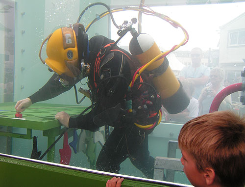 Something that you don't get a chance to see everyday unless you work in a diving bell is a diver carrying out tasks in a full deep-sea kit but this huge tank of water with glass sides had many kids fascinated.
