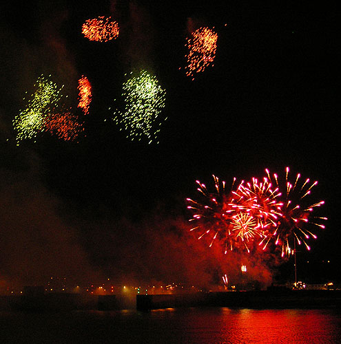 The display was was compressed into about 9 minutes so was pretty much full-on all the way through but there were several different phases utilising different effects. The intensity did increase towards the end forming a crescendo of noise and colour that reached its peak when the whole sky seemed full of colour that suddenly faded to black and an eerie silence until everyone cheered and the boats sounded their horns in appreciation.