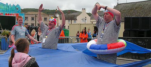 The Van Dunk Brothers all the way from Holland or somewhere much closer had this mercifully unique comedy act based around synchronised swimming in a rather land locked area of quay street car-park but their ad-libs and patter kept everyone amused.