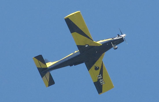 The next aircraft to appear was a Pacific Aerospace 750 XL ,a specialist short take-off aircraft built by a New Zealand company, which was bringing the Black Knights Royal Artillery Parachute Display Team. It first dropped some streamers to gauge the wind strength then cork-screwed upwards until almost out of site above the Candlestick.
