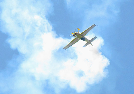 The Black Knights were followed by the Cossack display team - they normally have two Yak 52 aircraft of Soviet design but this time one of the Yaks was partnered by a Pitts Special.
