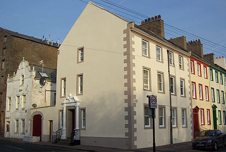 The acorn is the focal point of the scrolled pediment from one of the earliest surviving doorways in Whitehaven, dating from about 1745, on the corner of Scotch Street. With its ionic columns, the doorway to 30 Roper Street was probably designed by its original owner James Spedding whose family's heraldry included the acorn device.
