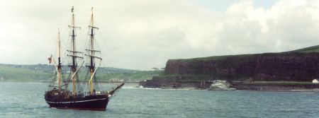 On board, below deck, was a photo display of some of the films in which Kaskelot has appeared masquerading as a number of different ships. This included Scott's ship "Tera Nova" in Last Place on Earth. Other film and TV work includes: Cut-throat Island, Swept From The Sea (aka Amy Foster), Return to Treasure Island, The Three Musketeers, Longitude and David Copperfield. She also appeared in a Scottish television series called Stamp of Greatness where she doubled for John Paul Jones' smaller ship Ranger - the very one he used in his attack on Whitehaven, in 1778.