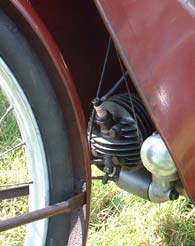 | Appearing at first to be a pedal cycle this James bike had a tiny engine tucked away under the faring. |